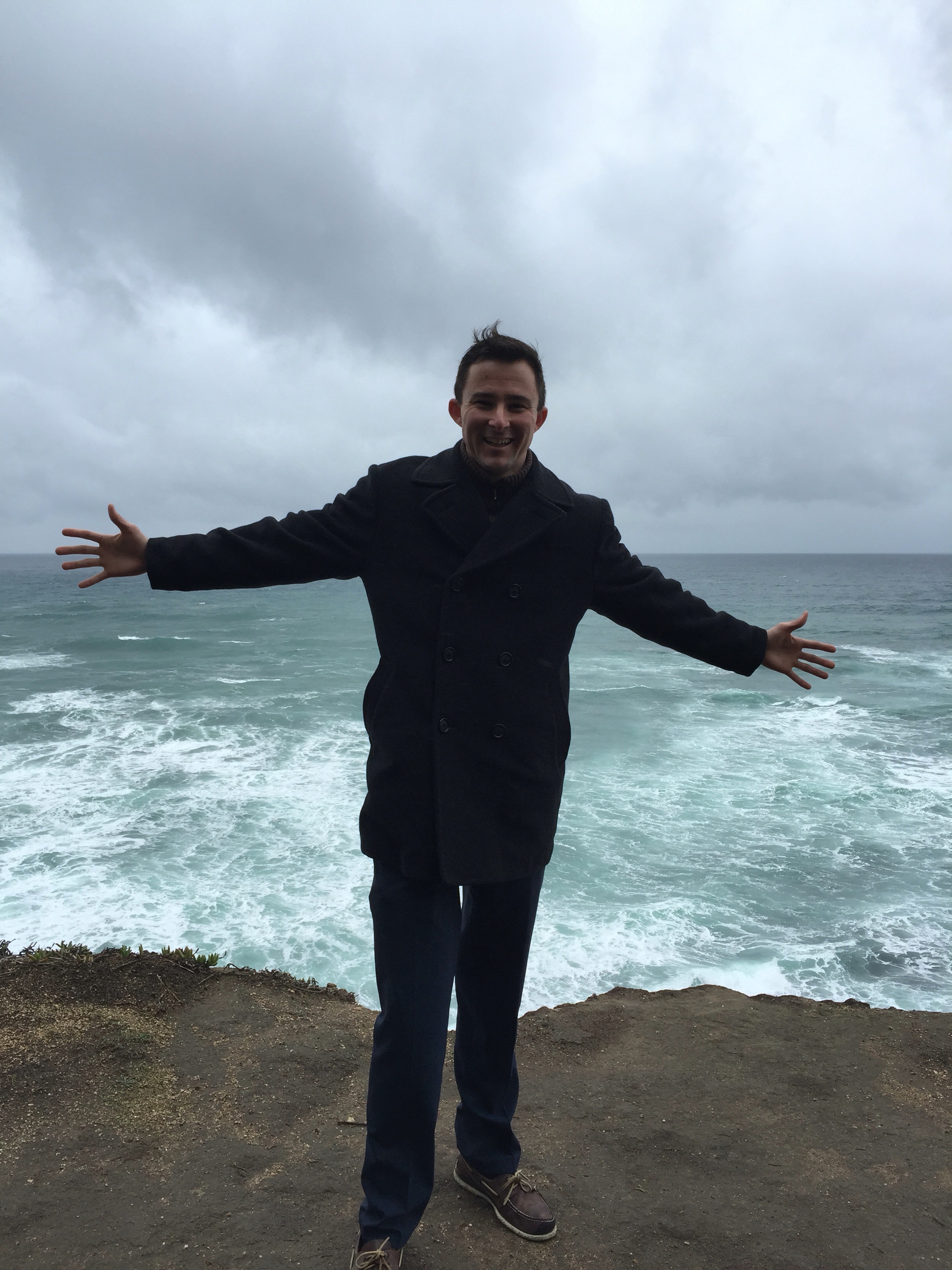 Following the safety signs, I went to where the path took me but that’s just not me. I headed off the path into the woods. What I found was remarkable but more so was the feeling. Ten minutes south by foot, I awakened my spirit and was utterly shocked! The wind against my face, the mist turning into a stronger drizzle, the sound of the waves crashing, and the sight of eternity across the big blue Pacific Ocean!